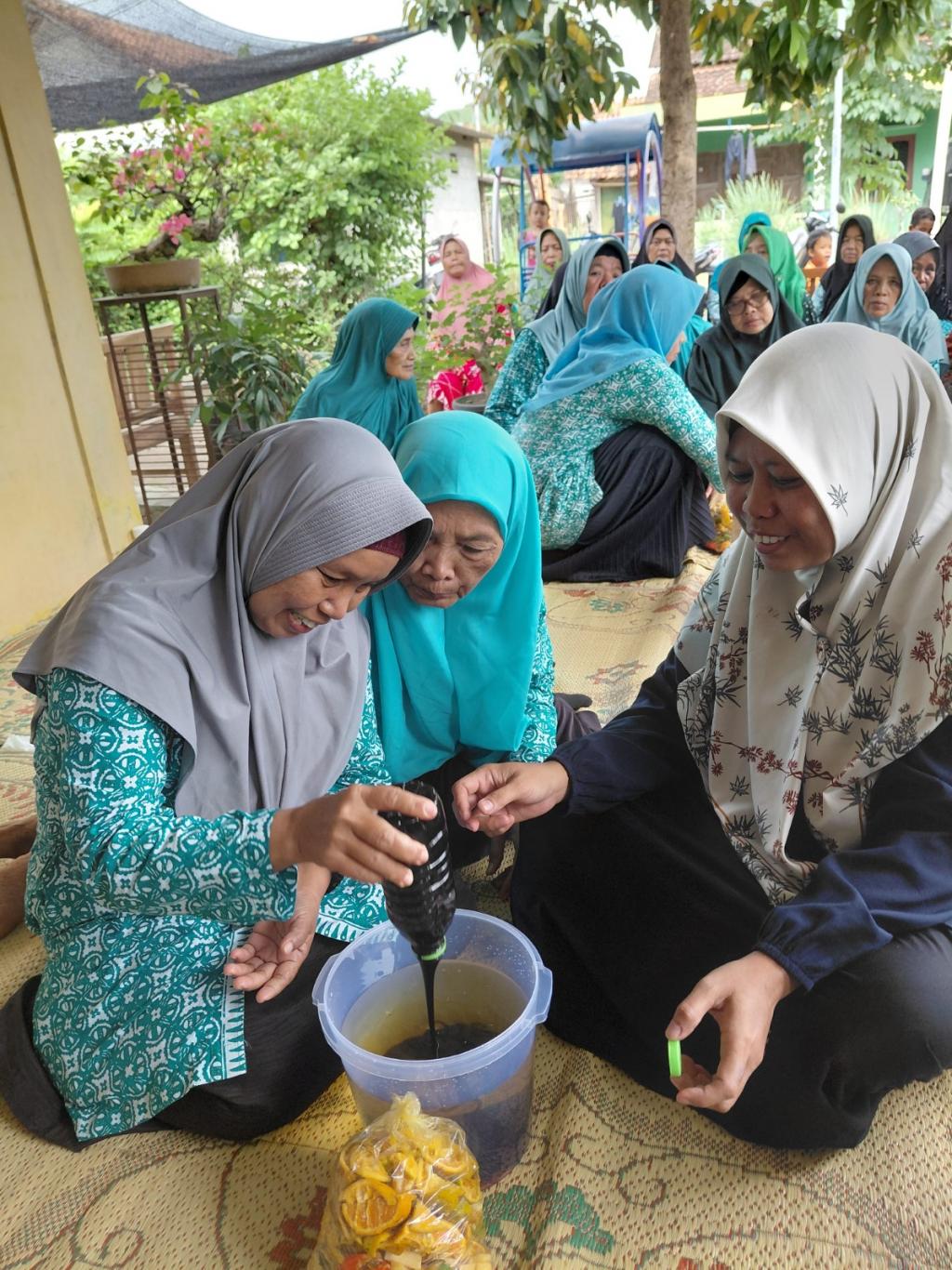 Bagian yang paling menarik adalah saat praktik pembuatan eco-enzyme , yang mana dibentuk kelompok yang terdiri dari 6 kelompok dan dibimbing oleh Ibu Tsalis. Ibu – ibu tampak senang dan bersemangat , sembari beberapa mengambil foto dan video untuk diabadikan. Kolaborasi antara mahasiswa dan masyakarat ini diharapkan mampu memperkuat budaya peduli lingkungan , sehingga tercipta masyakarat sadar lingkungan dan tercapainya tujuan pemerintah Kabupaten Bantul yaitu “ Bantul Bebas Sampah 2025”. Dengan semangat perubahan mahasiswa KKN-M Blawong 1 2025 membuktikan bahwa perubahan besar dimulai dari kesadaran akan hal – hal kecil yang ada disekitar kita
